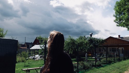 mida brit siin hirmuga vaatab? pilvi, mu sõbrad, sest me oleme siin parasjagu teel välietendusele. ning jah. need pilved jõudsid meile järele.||why is brit looking at these clouds? well, my friends, we were on our way to a play that took place OUTDOORS! and yep, these clouds found us once again in narva.