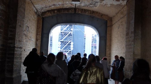 jah. meie olime see etendus, kes sai vihma ja rahet. meie etendusel oli isegi president kohal, kes teenis hilinemisega ära terve posu kätekõverdusi (näitleja katrin pärn tegi parasjagu sissejuhatust etendusse ja märkas presidendi sisenemist…). muidugi presidendi vapustavat vormi tunnistades… tal ei olnud nende kätekõverdustega küll ühtegi probleemi.||yep. this is where the play took place. we witnessed heavy rain and hail. president of estonia was with us in the crowd, but she was a bit late, so one of the actresses (katrin pärn) saw it and ordered her to do lots of pushups during the intermission. well, our president is in such a good shape that these pushups are no problem for her.
