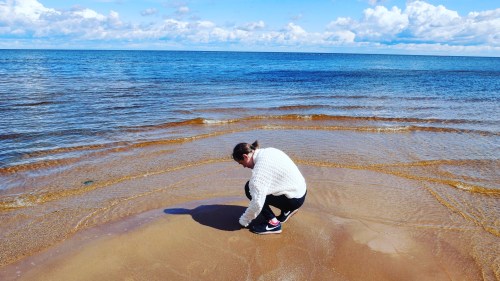 peipsi järve suurust on väga raske hoomata. see tundub olevat justkui meri, millel pole otsa ega äärt. meeletult suur, lihtsalt. ||it is very difficult to believe that this is a lake. it seems to act and feel like a sea with its enormous size.leidsin karbi ja vajaduse seda välja kraapima hakata.||i found a shell, decided to dig it out. ja suutsin peaaegu ujumas käia.||and almost swam.