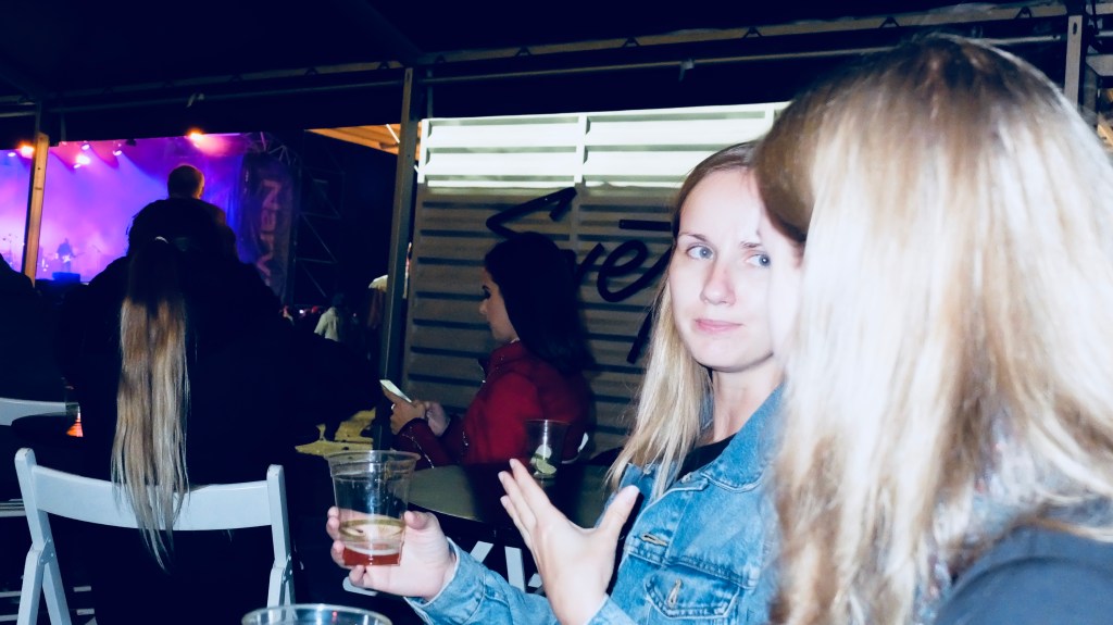 kui nüüd pidu ennast arvustada, siis muusika mõttes oli palju häid-huvitavaid artiste, aga korralduslikult ei mänginud mitmed asjad omavahel hästi kokku. lubage rõhutada, et seda kõike minu arvates. esiteks keeras ilm jahedaks, mistap ei kannatanud festivalile kohaselt kaua väljas olla. kuna siseruumid olid samuti jahedad, siis hakkas üsna kiirelt kõle (ja ma ei olnud õhukeselt riides). olukorra päästsid gaasipõletid, mis soojust enda ümbrusesse paiskasid. teiseks, mulle meeldib zahir. väga, kusjuures. iga nende kontsert on minu jaoks elamus. sel korral pidi bänd esinema meeletule ja kiirele kajale kalduvas ümbruskonnas, mistap kadus vahepeal muusikaline mõttelõng mul ära. kolmandaks, söögi- ja joogivalikut nappis. ma ei peagi silmas, et peab olema intsikurmule omaselt pikk söögitänav kõikvõimalike variantidega, aga kaks-kolm burgeriputkat on ikkagi vähevõitu (jällegi, minu arvates). muideks, üks putka oli seal küll vaimustav, pakkus miskest leivakest (piirone?), mis maitses ju-ma-li-kult! neljandaks, kava jättis päris palju aega, et ringi vaadata, aga… lihtsalt… polnud nagu midagi rohkem kaeda. külm oli ka. AGA! mul oli mu suurepärane seltskond, kellega koos aeg lausa lendas.