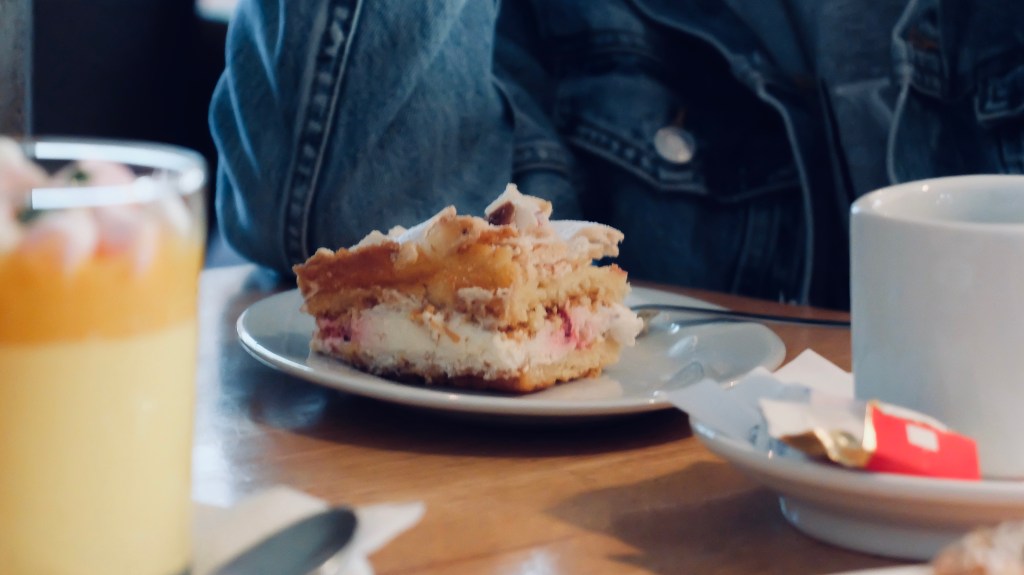 aga enne viimast jalutuskäiku promenaadil otsustasime Munas süüa… küll aga polnud nende hommikune menüü eriti mitmekülgne, mistõttu otsustasime süüa werneri kooke. hele muidugi oli ratsionaalne ja sõi hommikuputru.