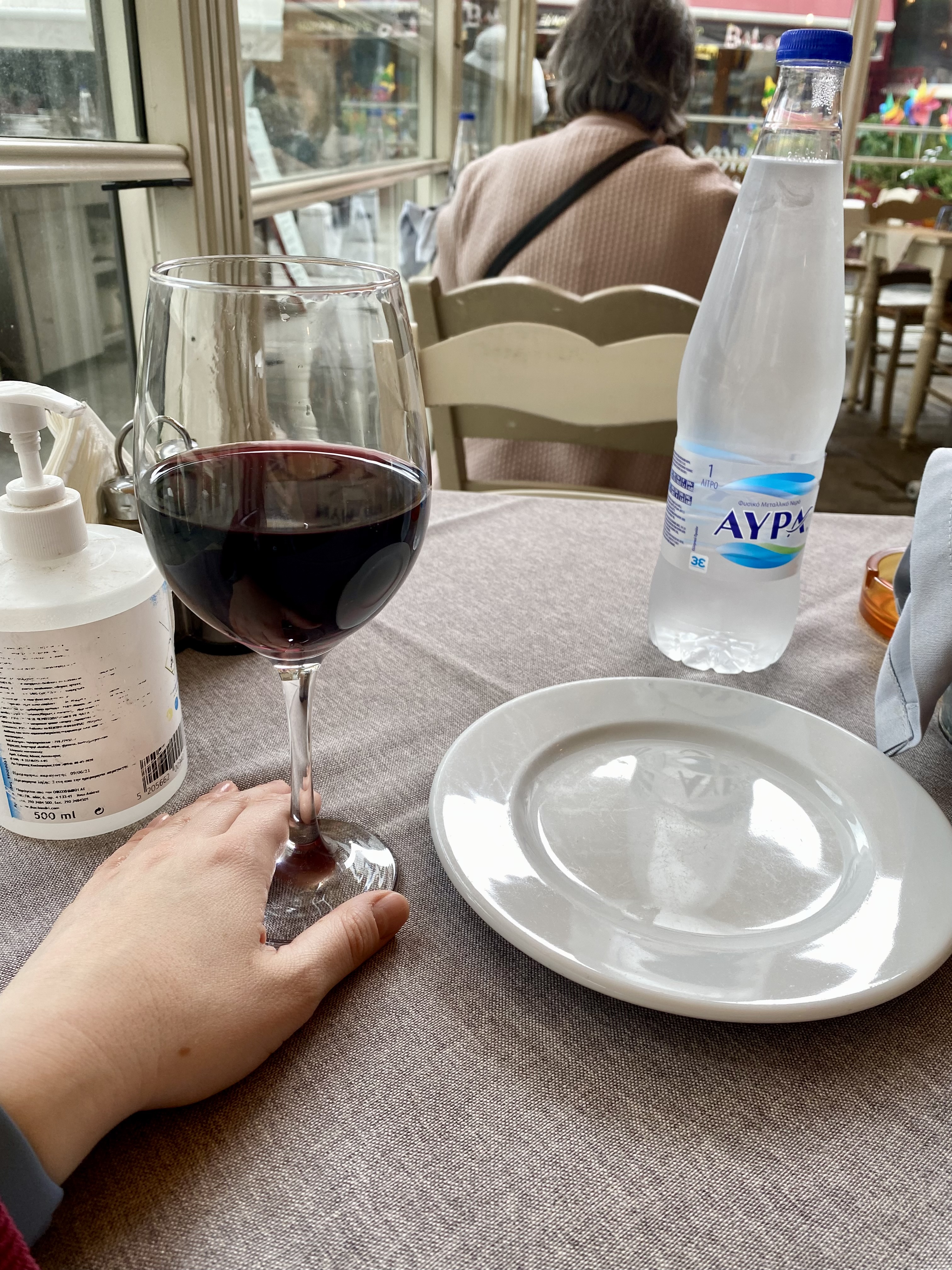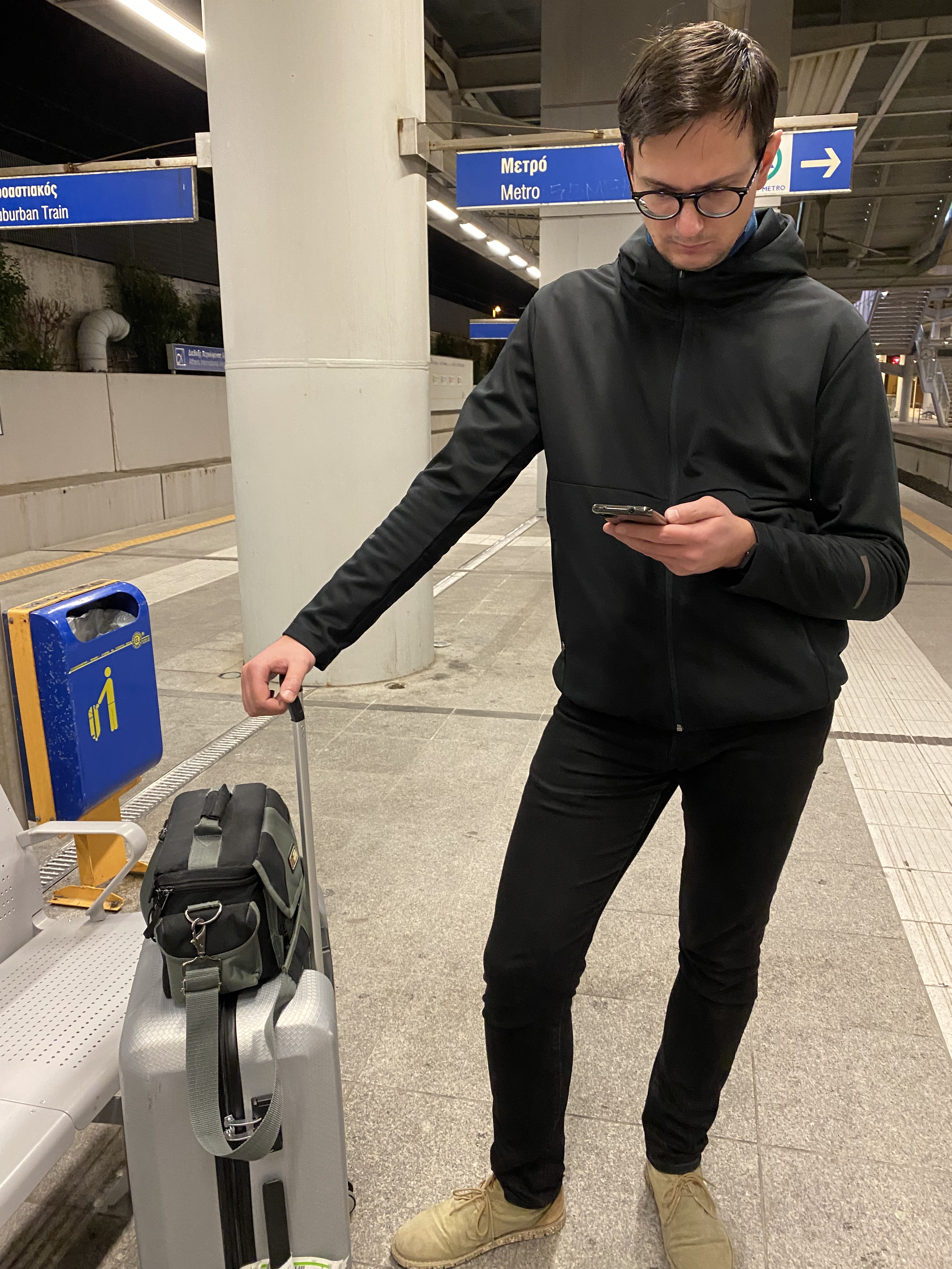viinist lendasime kreekasse ja jõudsime kenasti pärale. ent. tol õhtutunnil pidime üsna pikalt ootama rongi või siis metrood (tegelikult vist ikka kombinatsioon neist kahest), mis omakorda sõitis ateenasse päris kaua, ligi tund, kui ma õigesti mäletan. mul peas vasardas, et oh kui mõnus, saame nüüd sööma minna ja … siis me jõudsime ateenasse tegelikult üsna hilisel tunnil. sööma ei jõudnudki, tellisime hoopis wolti. mäletan, et õues lõhnas hästi, aknast piilusid sisse täislehis puud… soe oli. nii mõnus.